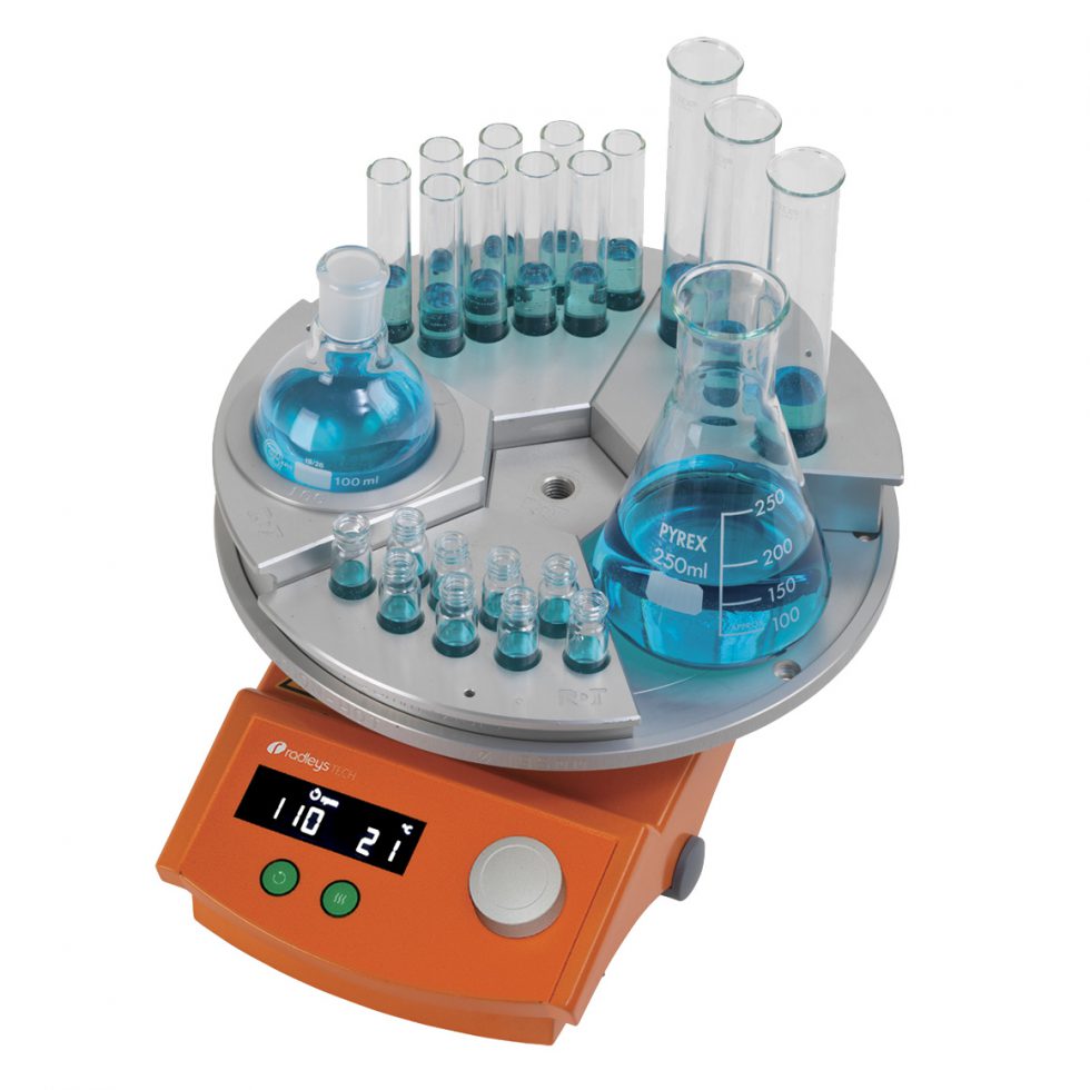 - Space saving – uses less space than multiple heating and stirring set-ups.