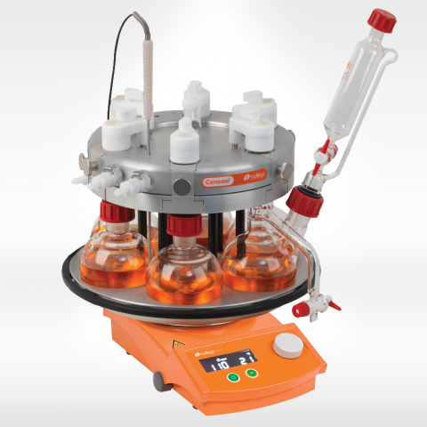 The patented Carousel 6 Plus simultaneously heats, stirs and refluxes multiple samples under an inert atmosphere